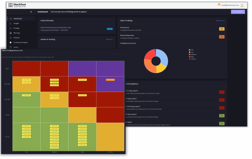 Blackfoot’s centralised Technical Assurance platform. It gives you complete visibility of vulnerabilities across your organisation, with clear accountability for remediation actions to ensure timely resolution.